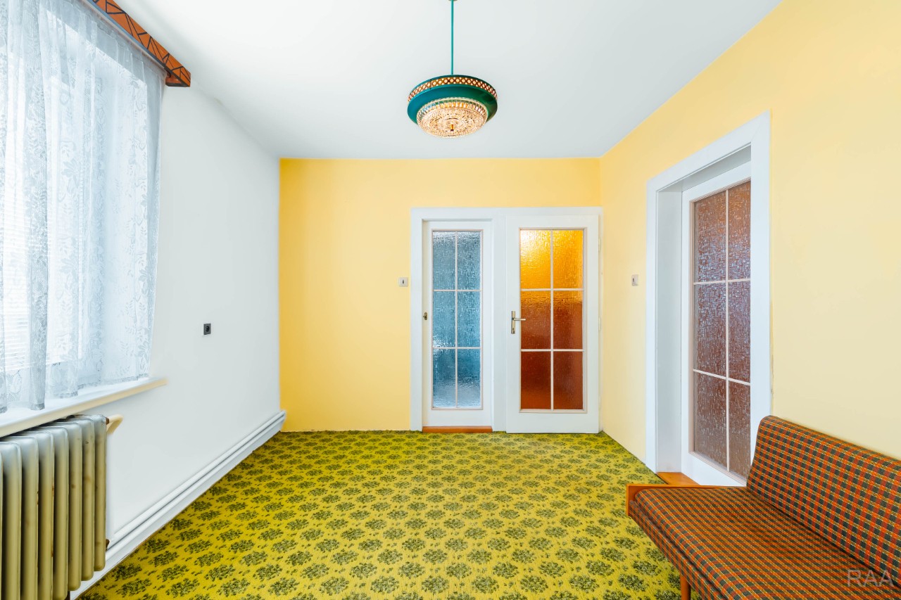 Nabízíme k prodeji prostorný byt 3+1 se zahradou a sklepem v menším cihlovém domě, v osobním vlastnictví, v Lutíně, 8 km od Olomouce. Bytový dům je samostatně stojící se 6 bytovými jednotkami. Každý byt má samostatný vchod z ulice a využívá část pozemku – zahrady. Byt je mezonetový, nachází se v přízemí a 1.patře dvoupodlažního bytového domu bez výtahu a má užitnou plochu 122,5 m² včetně vstupní verandy (2,12 m²) a sklepu v suterénu domu (41,69 m²). Dům byl postaven kolem r. 1940, je podsklepený, má 2 nadzemní podlaží. Dům je zděný a je po částečné revitalizaci: r. 2020 střecha vč. oplechování, r. 2018 nová plastová okna, r. 1986 napojení na plyn. V bytě proběhla výměna plyn. kotle v r. 2012, renovace koupelny a WC r. 2005 (obklady, dlažba, sanita), plovoucí podlaha. Elektro, odpady původní. V bytě se nachází vstupní veranda, předsíň, obývací pokoj, kuchyň s jídelním koutem (plynový sporák s el. troubou, dřez), samostatné WC s oknem, spíž, schodiště do patra. V 1.patře pak 2 průchozí pokoje, koupelna (umyvadlo, vana, místo na pračku, okno). Podlahy- v koupelně a WC dlažba, v obývacím pokoji a kuchyni plovoucí podlaha, v pokojích koberce. Elektroinstalace a vnitřní dveře původní. Dům je napojen na tyto IS – el., plyn, obecní vodovod, obecní kanalizace. Vytápění – ústřední, plynový kotel (vlastní kotelna ve sklepě). Ohřev vody – plynový bojler. Internet optika. V suterénu domu velký sklep (41,69 m²), kde v části je umístěna vlastní kotelna s plynovým kotlem, další část slouží jako úložný prostor. K bytu patří menší oplocená část pozemku, který slouží jako zahrada (cca 84 m²). Na zahradě voda, zásuvka, el. 380. Parkování na pozemku nebo na ploše před pozemkem. Měsíční náklady – 4 390 Kč. Úvěr na revitalizaci splacen. Orientace zahrady Z. Internet, TV anténa. V obci bus, MŠ, ZŠ, obchody, lékaři, pošta, restaurace, hřiště, veškerá občanská vybavenost. Nezáplavová oblast. Volné ihned. Cena vč. právního servisu a provize RK. Majitel si vyhrazuje právo rozhodnout podle svých kritérií, s kým uzavře kupní smlouvu v případě více zájemců. Kompletní informace o stavu nemovitosti obdržíte u makléře, uvedené údaje jsou pouze informativní. Energetický průkaz budovy nebyl vyhotoven, proto je v inzerci uváděna hodnota G.